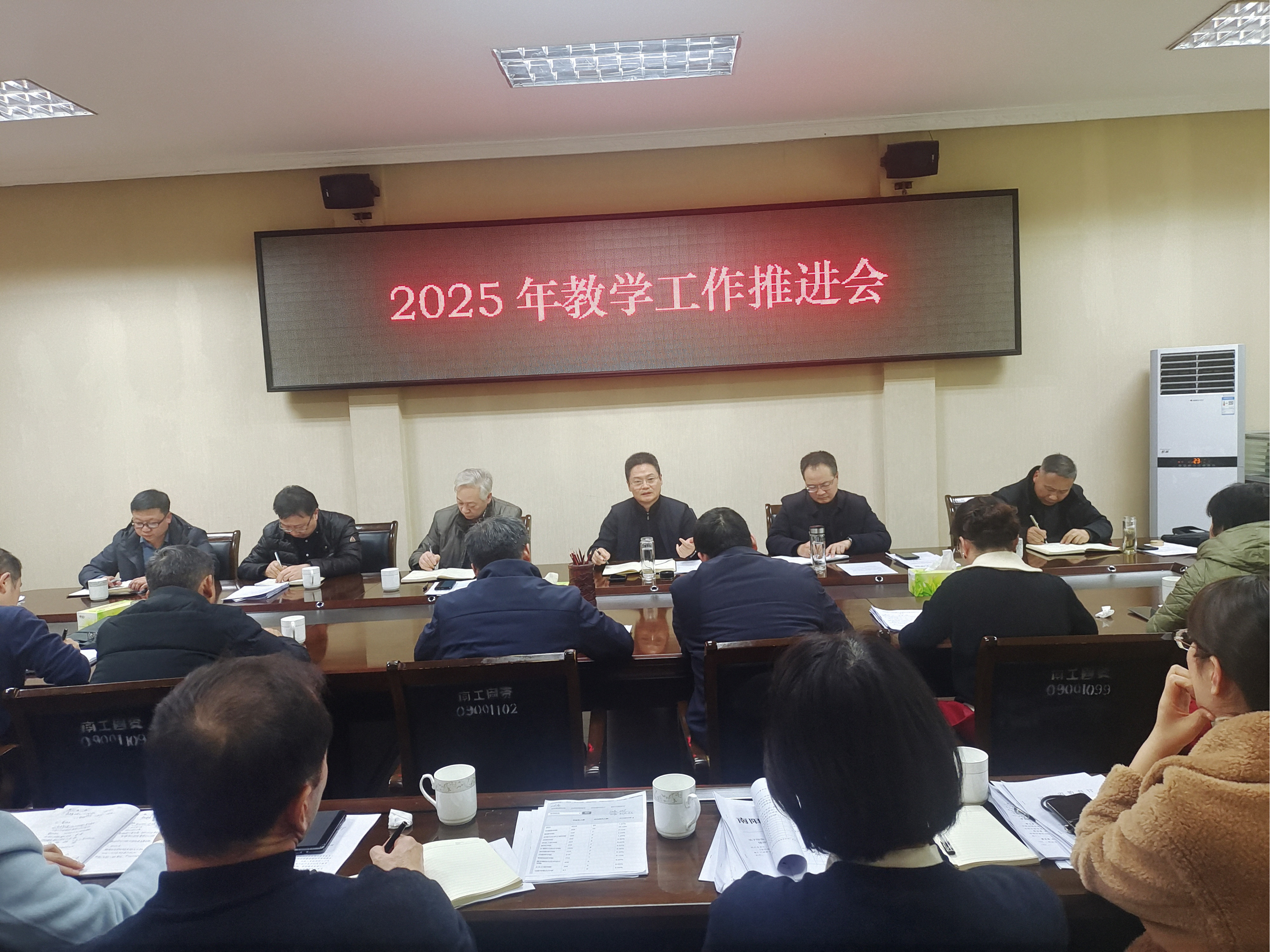 本网讯(特约记者/范灵燕)12月29日下午,我校2025年度教学工作推进会在第一会议室召开,副校长蔡广宇主持会议,校长郝好山出席会议并讲话。各教学院(部)院长、教学副院长,招生就业处、教学评估与质量监控中心、教师教学发展中心、心理健康教育中心、教务处负责人参加会议。