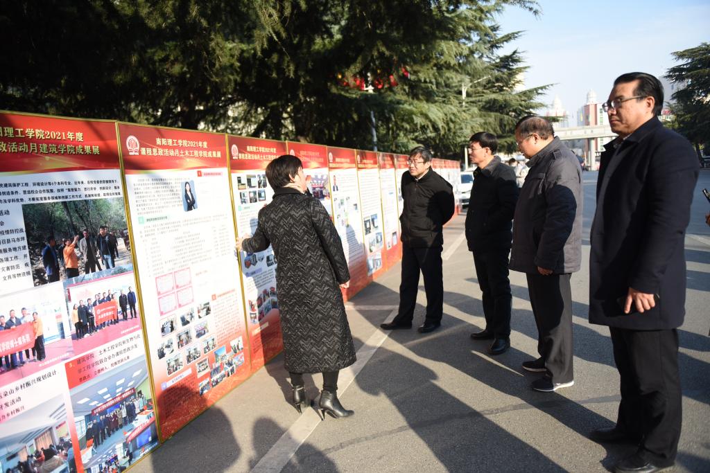 12月30日,由学校课程思政建设领导小组牵头举办的“2021年度南阳理工学院课程思政活动月成果展”在学校中央大道举行。校领导安士伟、张伟、张世海、葛晨光及二级学院副院长参加了此次活动。