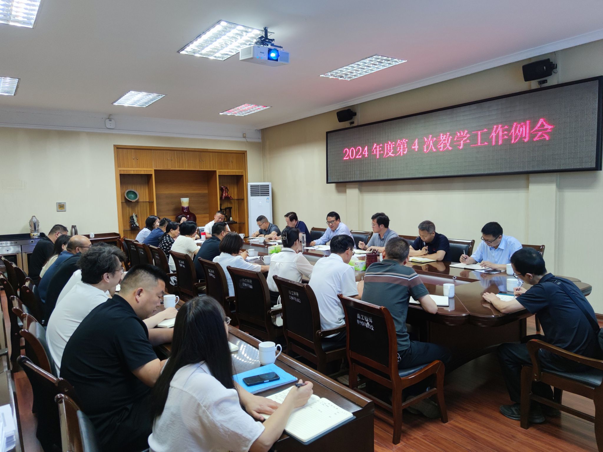 本网讯(特约记者/江莉莉)5月27日下午,我校2024年度第4次教学工作例会在第一会议室召开,副校长葛晨光出席会议并讲话。各教学院(部)教学副院长(副主任)、教学评估与质量监控中心负责人及教务处全体人员参加会议。