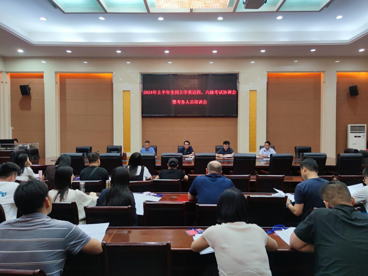 为认真贯彻落实教育部考试中心和省教育考试院关于全国大学英语四、六级考试工作的有关要求,确保我校考试工作平稳顺利进行,6月12日下午,学校在会议中心及毕业大厅分别召开了考试协调会和考务人员、监考教师培训会。校领导葛晨光出席会议,教务处、学生处、外国语学院、后勤管理服务中心、保卫处、校医院等部门负责人及考务人员和监考教师参加会议。